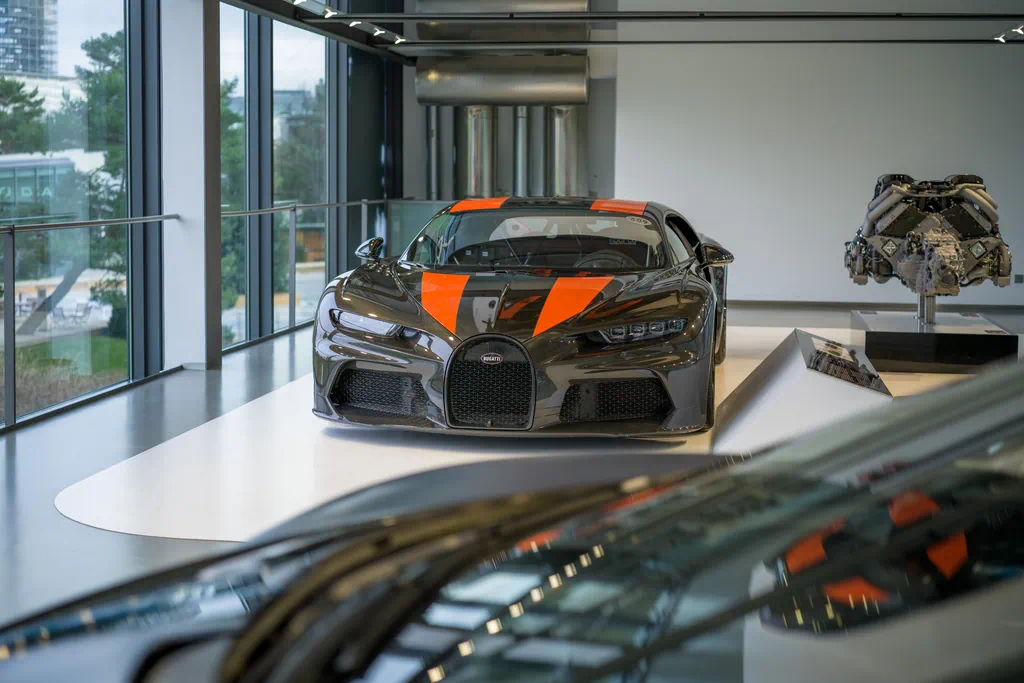 Der Bugatti Chiron WRC 300+ (2019) erreichte als erstes Serienauto der Welt eine Geschwindigkeit von über 300 Meilen pro Stunde (482 km/h) – wortwörtlich ein Meilenstein der Automobilgeschichte. Das Rekordfahrzeug setzte mit einem Topspeed von über 490 km/h eine Bestmarke für Verbrenner, die bis heute Bestand hat. Ergänzt wird diese Themeninsel durch den W16-Motor – das zentrale Element dieses Rekords.