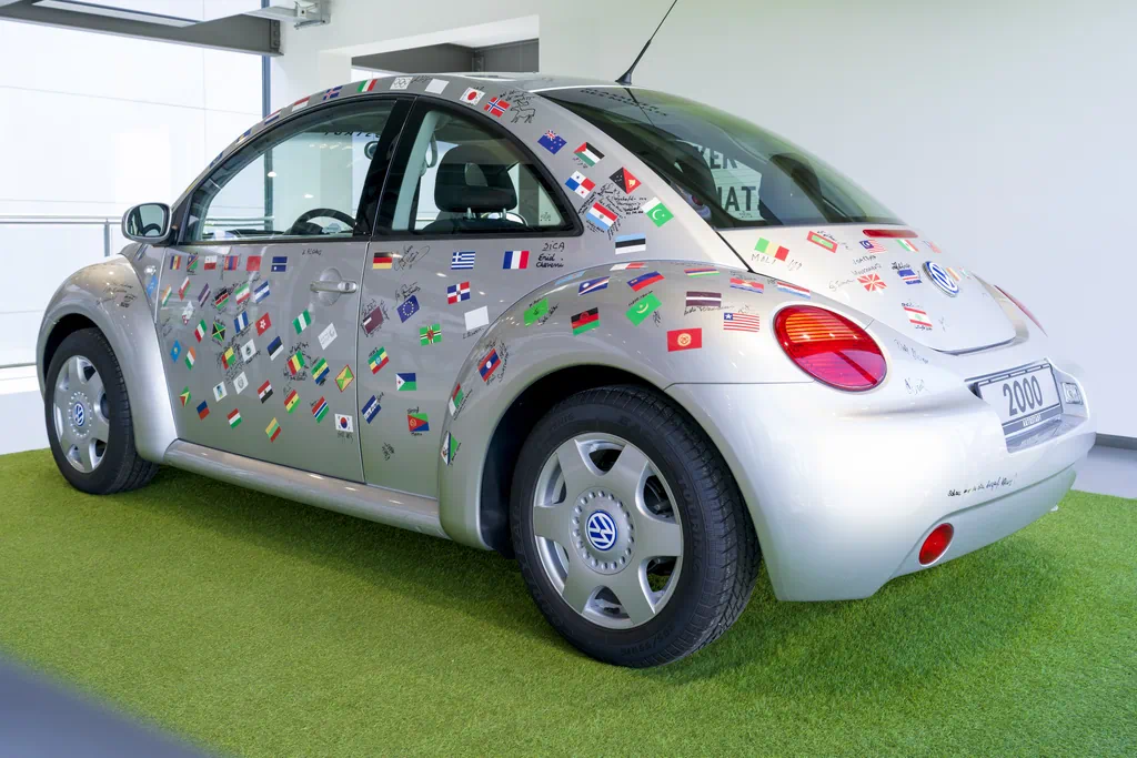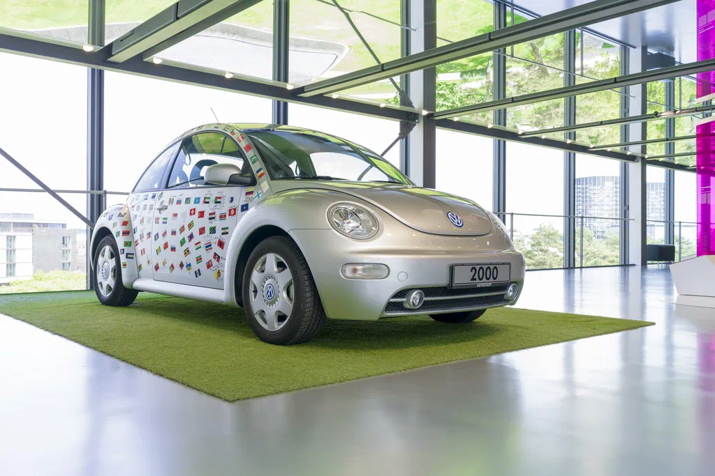 Der New Beetle „EXPO 2000“ symbolisiert die enge Verbindung zwischen dem automobilen Themenpark in Wolfsburg und der Weltausstellung in Hannover. Anlässlich der Eröffnung der EXPO unterschrieben Persönlichkeiten der ausstellenden Staaten auf seiner Karosserie. Zusätzlich zeigen kleine Aufkleber die Landesflaggen der 155 Nationen, die auf der EXPO 2000 vertreten waren. Der Volkswagen New Beetle erschien dafür perfekt geeignet: Als eines der ersten Fahrzeuge im Retrodesign zitierte er die Form des legendären Volkswagen Käfer, der weltweit bekannt und erfolgreich war. Bereits 1994 hatte Volkswagen die Studie „Concept 1“ vorgestellt, die das ikonische Käfer Styling neu interpretierte und vom Publikum begeistert aufgenommen worden war. 1998 kam die Serienversion als Volkswagen New Beetle auf den Markt, produziert im mexikanischen Puebla – anfangs parallel zum klassischen Käfer. Nach rund 1,2 Millionen New Beetle endete die Produktion im Herbst 2010.