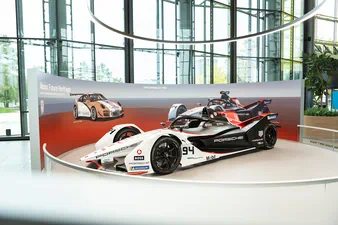 Der erste Racer stammt aus der Formel E: Im Porsche 99X Electric trat Werksfahrer Pascal Wehrlein in der Saison 2022/23 an. Die Formel E ist die erste vollelektrische Rennserie der Welt und bringt seit 2014 spannenden Motorsport in internationale Metropolen – alle Rennen werden auf Stadtkursen ausgetragen. Als Beschleuniger für innovative und nachhaltige Mobilitätstechnologien soll sie gleichzeitig die Akzeptanz von Elektrofahrzeugen fördern. Das Porsche Formel E Team hat bereits 13 Rennsiege auf dem Weg zu seinen drei WM-Titeln errungen. Der ausgestellte 99X Electric leistet bis zu 250 kW (340 PS) und beschleunigt auf maximal 280 km/h. Aus dem Stand sind in nur 2,8 Sekunden 100 km/h erreicht.